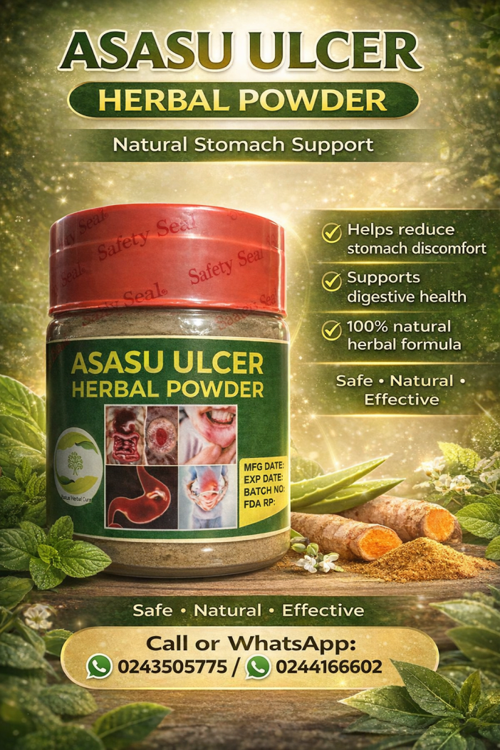 Asasu Ulcer Herbal Powder is a natural herbal formula designed to support the body in managing stomach issues such as Peptic Ulcer. It helps soothe the stomach, promote digestion, and support overall gut health.